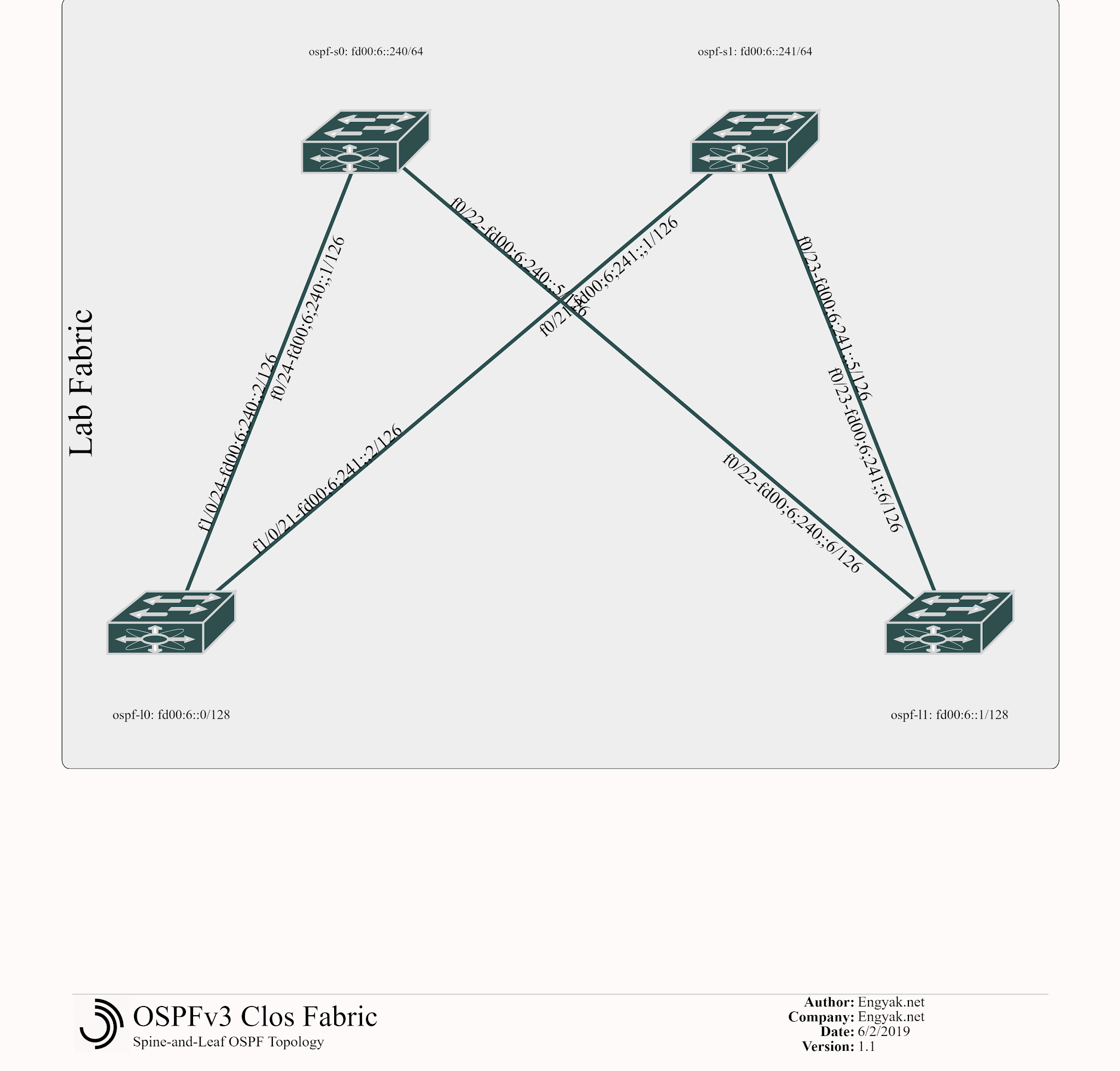 Note: technically we don't have to number the leaf-spine-leaf links in IPv6 with OSPFv3/RIP-ng/EIGRP, but that is a personal preference of mine to keep it consistent with future designs, and to allow for ease of troubleshooting.